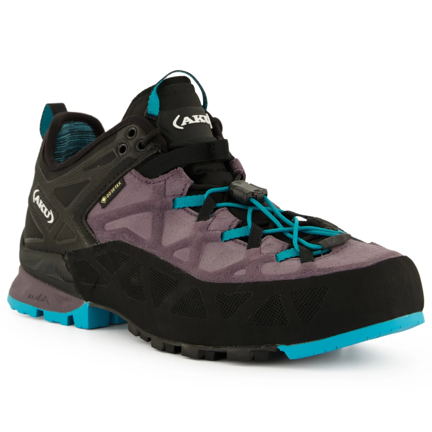 Superrobust, ausdauernd und dennoch leichtfüßig unterwegs: mit den Women’s Rock DFS GTX Approachschuhe von AKU! Top-Materialien und durchdachte Technologien machen sie zu hochfunktionalen Begleitern bei Zustiegen, leichten Klettereien, Klettersteigen und ruppigen Bergpfaden. Ihre charakteristische Vorfußkonstruktion umgibt und schützt mithilfe eines speziellen Bands die Zwischensohle im Innenbereich. Das Internal Midsole System mit seinem Exoskeleton-Gerüst und federleichtem PU-Innenteil optimiert diese Stabilität und fügt eine ideale Stoßdämpfung hinzu. Die Vibram Approcciosa-Sohle steuert ein Megagrip-Hochleistungscompound für maximale Festigkeit und Reibung bei.