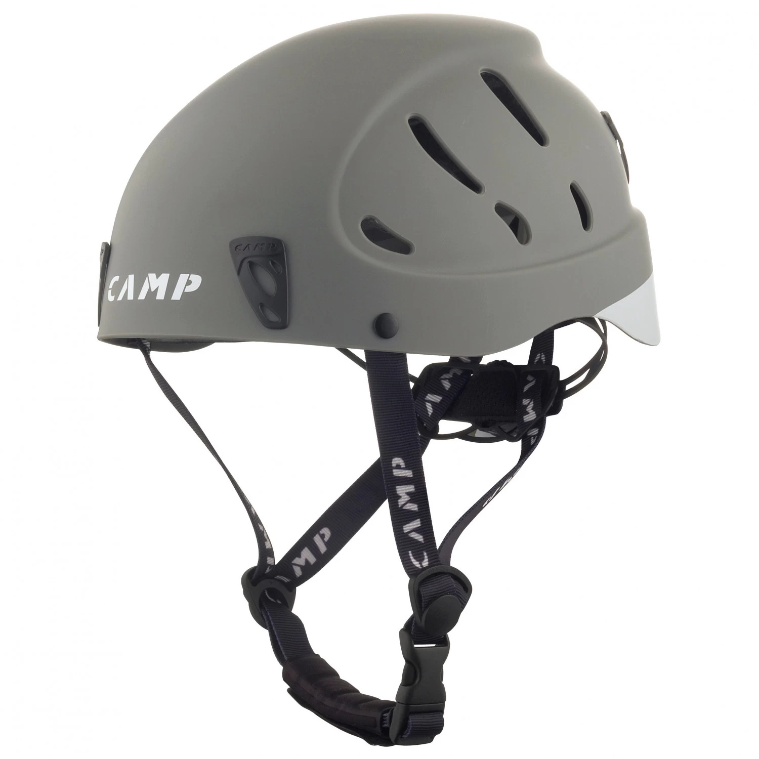 Ideal für’s Klettern, Bergsteigen oder beim Klettersteiggehen: der Armour von Camp! Der robuste Hybridhelm mit gegossener thermoplastischer Außenschale und Schaumauskleidung schützt den Kopf zuverlässig vor herabfallenden Steinen. Der Armour bietet eine sehr gute Passform und liegt angenehm auf dem Kopf – denn er lässt dich über ein Wheel System perfekt auf den Kopfumfang einstellen. Die weichen Polster im Helm tun das Übrige für besten Tragekomfort… Natürlich stimmt dank seitlicher Belüftungsschlitze auch das Klima unter dem Helm – schließlich sollte man in kniffligen Situationen einen kühlen Kopf bewahren! Dank der Halterungsclips kann eine Stirnlampe am Helm befestigt werden, was Einsätze im Dunkeln möglich macht. Der Kinnriemen kommt ebenfalls mit Polsterung und gut zu bedienender Steckschnalle und ist ebenfalls voll verstellbar. Den Armour gibt es in schönen Farbkombis und er entspricht den gängigen Sicherheitsnormen.