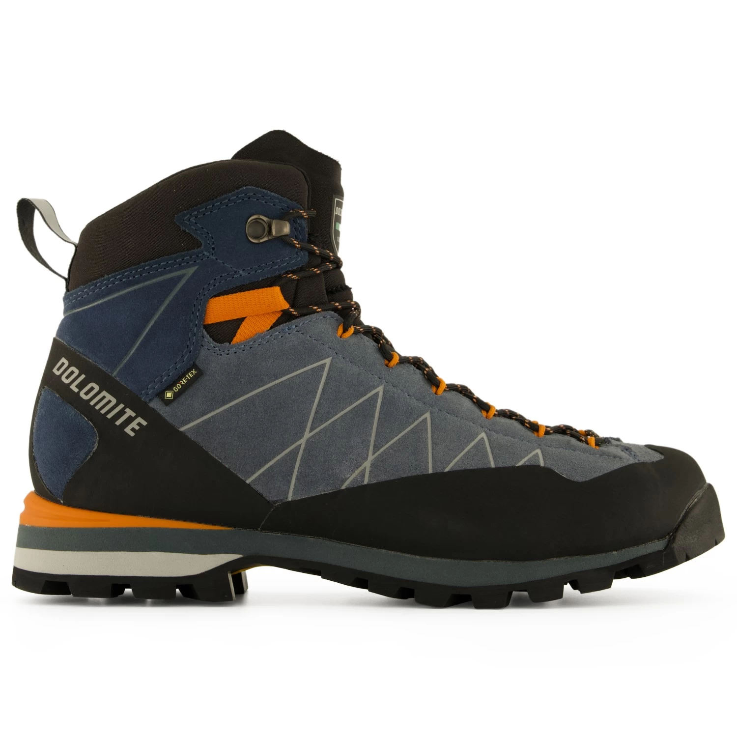 Die Crodarossa Hi GTX Approachschuhe von Dolomite sind mit einem stabilen Geröllschutzrand konstruiert und schützen Deine Füße beim Zustieg optimal gegen Geröll und Steine. Die Wanderschuhe kannst Du ebenso gut für Wanderungen, Hüttentouren und die Begehung von Klettersteigen nutzen. Durch die präzise Schnürung und den verstärkten Fersenbereich sitzt Dein Fuß sicher im Schuh und verrutscht selbst in steilem Gelände nicht so leicht.