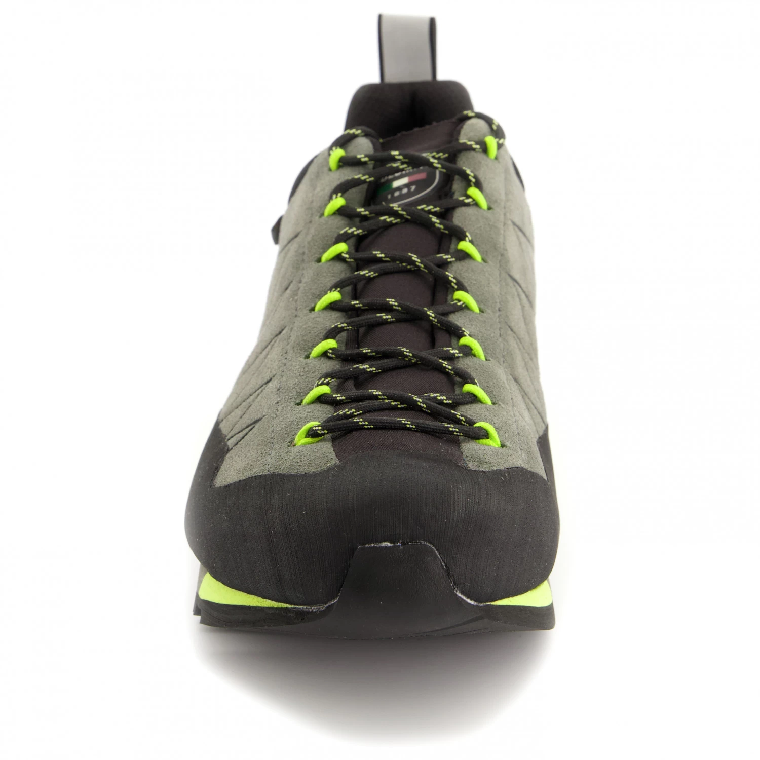 Durch das Dolomite Wrapping System mit einer speziellen Zungenkonstruktion wird Dein Fuß selbst in technischem Gelände sicher im Schuh gehalten. Im Bereich der Außensohle kommt die abriebfeste Megagrip Gummimischung von Vibram zum Einsatz. Der robuste Geröllschutzrand der Dolomite Crodarossa Low GTX Multisportschuhe schützt Dich gegen Geröll und Wurzeln.