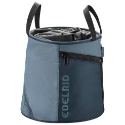 Die Gulp Chalkbag von E9 ist eine noch praktischere Ausführung einer Aufbewahrungstasche beim Bouldern. Flach, leicht und mit Henkeln und Schlaufen versehen, kann der Beutel entweder in die Hand genommen oder beim Sport an die Kleidung befestigt werden. Die schmale Öffnung sorgt dafür, dass der Inhalt nicht so einfach entwendet werden kann oder herausfällt.
