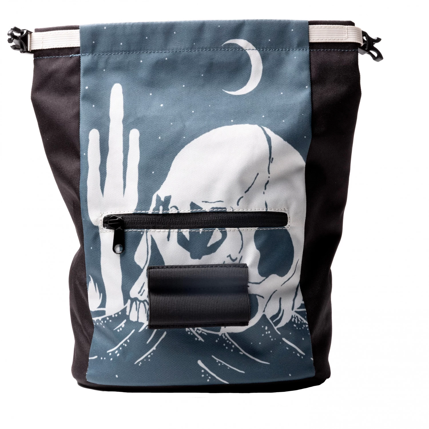 Viel Platz fürs heiß geliebte Chalk gibt es mit dem Chalk Bucket von Evolv. Dieser große Chalkbag kann beispielsweise beim Bouldern in der Halle aufgestellt werden und liefert so schnellen Zugriff. Praktisch: Neben dem eigentlichen Fach fürs Magnesia gibt’s noch zwei kleinere Taschen in denen diverse Utensilien untergebracht werden können. Auch an eine Bürstenhalterung wurde gedacht.