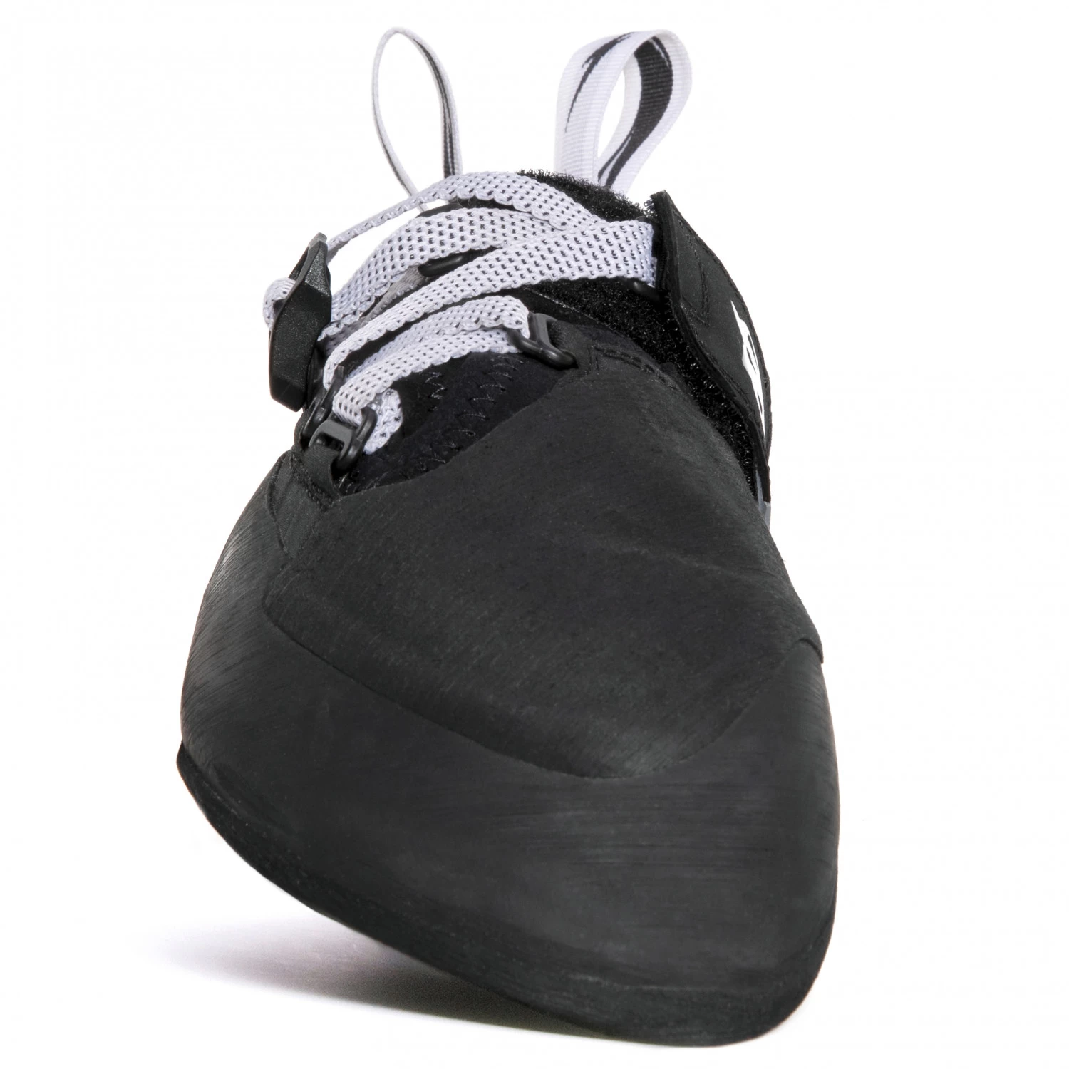 Die Sohle weißt einen aggressiven Downturn auf und ist gerade für das Stehen auf kleinen und kleinsten Tritten optimal geeignet. Außerdem wurden die Schuhe sowohl im Zehenbereich, als auch an der Fersen mit einer speziellen Gummierung versehen. Hierdurch ist das präzise Setzen von Toe- und Foothooks problemlos möglich. Wer es also am Fels und in der Halle nicht auf den Zufall ankommen lassen möchte, ist bei diesen Schuhen genau richtig.