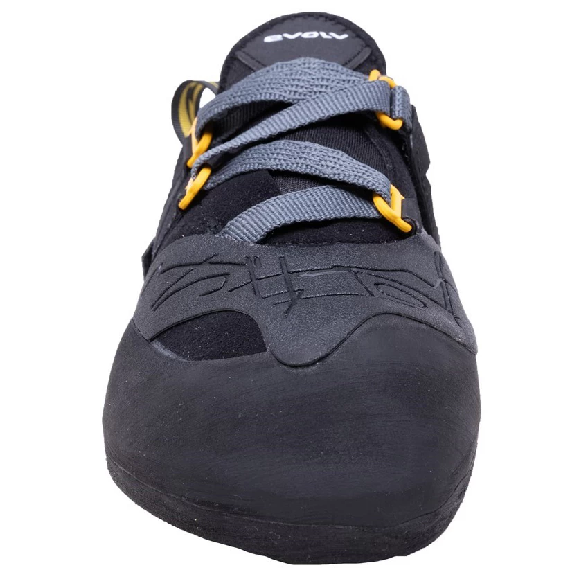 Die Shaman Pro sind ein besonders sensitives Modell, damit Du jeden Griff genau erfühlen kannst. Durch die Kombination aus starker Vorspannung, Downturn (= konkave Vorspannung der Schuhsohle im Vorderfußbereich zur Erhöhung des Anpressdruckes der Zehenspitzen) und stark asymmetrischen Leisten findest Du auch auf kleinsten Leisten aus jedem Winkel guten Halt. Zusätzlich verfügen die Kletterschuhe über einen Gummi-Rand am Obermaterial, welcher Dir bei Toe Hooks besonders guten Grip verschafft. Das macht die Shaman Pro von Evolv zu einem tollen Modell für ambitionierte Kletterer, denen keine Kletter-Herausforderung zu schwer ist!