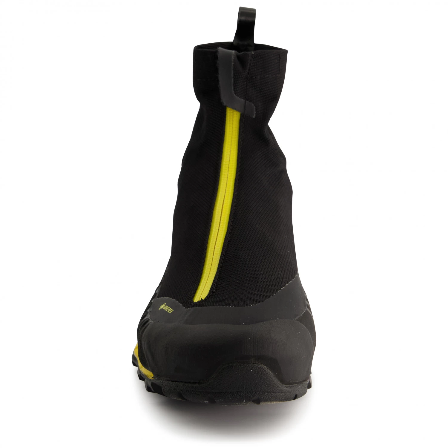 Eine hoch geschlossene, wasserdichte Gamasche umschließt den gesamten Schuh und schützt vor Schnee, Schmutz und eindringender Feuchtigkeit. Der Schuh selbst ist dank GORE-TEX Extended Comfort ebenfalls wasserdicht und die atmungsaktive Membran sorgt obendrein für ein angenehmes Fußklima. Ein Gummirand schützt vor Abrieb und Beschädigungen und ermöglicht die Nutzung von Grödeln.
