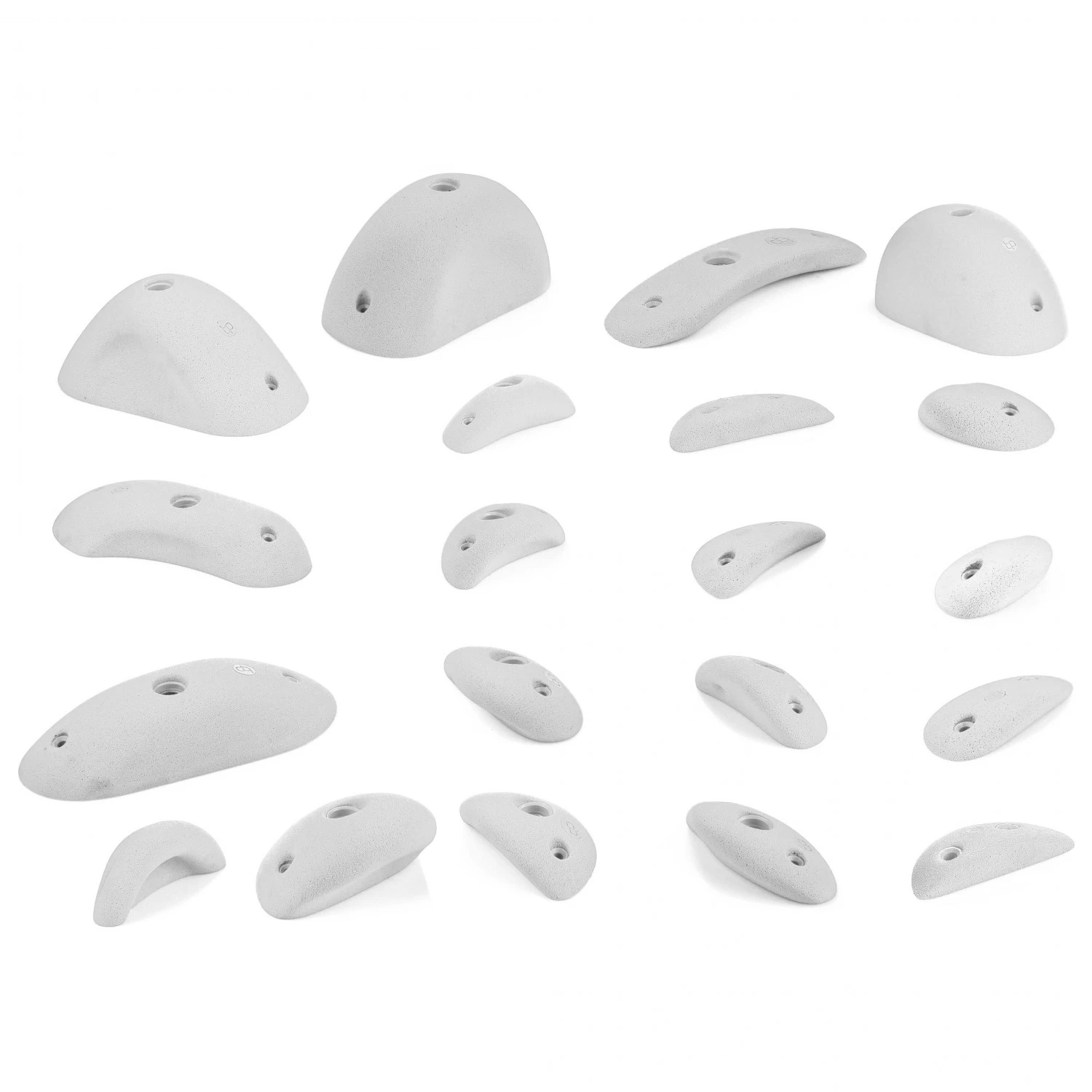 Ein bunter Mischmasch für die heimische Kletterwand – das Mixed All Set von blue pill! Hier bekommt man ein gemischtes Set aus zwanzig hochwertigen Klettergriffen, die perfekt zum Bau etwas anspruchsvollerer Routen geeignet sind. Die Pinches, Jugs und kleinen Aufleger sind aus griffigem Polyester gefertigt, das sich einfach reinigen lässt, und sind mit mehreren Befestigungspunkten für die M10-, Senkkopf- oder Zylinderschrauben versehen. So sitzen sie sicher an der Wand, während die hohle Konstruktion der Griffe Gewicht einspart.