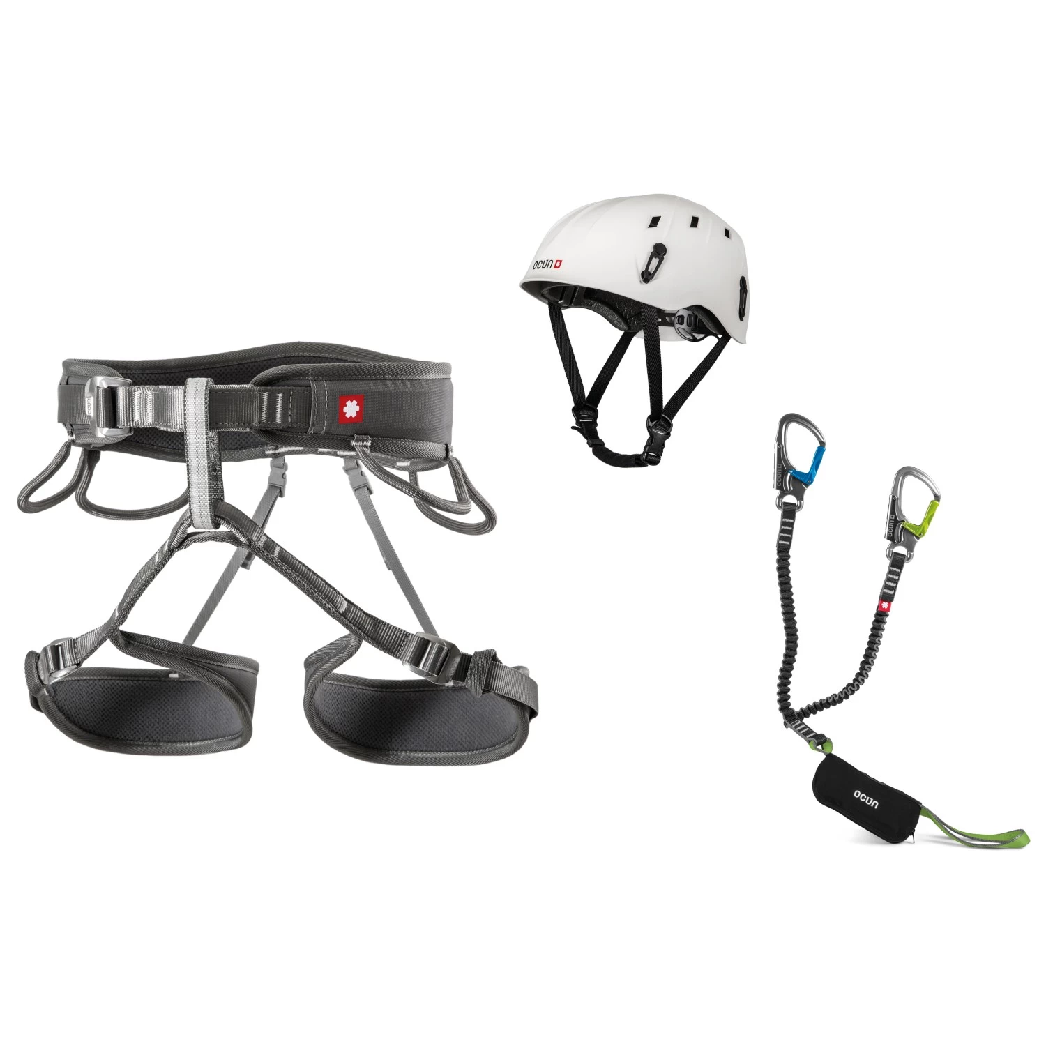 Ein kleines Rundum-sorglos-Paket für Klettersteige gibts mit dem Via Ferrata Twist Pail Set von Ocun. Dieses Kletterset besteht aus Sitzgurt, Klettersteigset und Kletterhelm und bringt so eine gute Grundausrüstung mit.