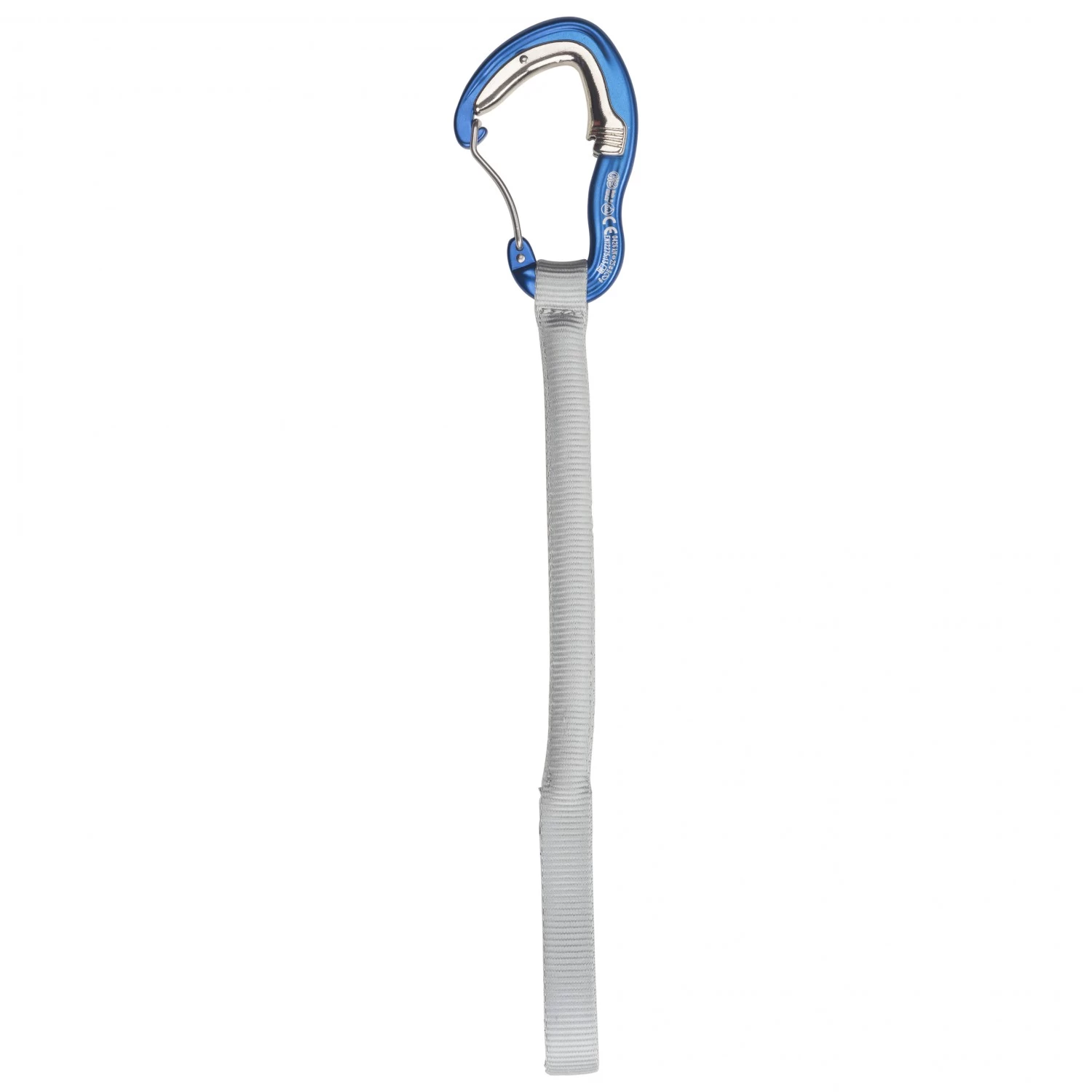 Super zur Entschärfung schwieriger Kletterstellen: Mit der praktischen Panic Cliphilfe von The Blue Light lassen sich schlecht positionierte Haken auch aus der Distanz erreichen – denn die 30 bzw. 50 cm lange Schlinge (stammt übrigens von Beal) ist so versteift, dass sich das Express-Set wie ein Clipstick nutzen lässt.