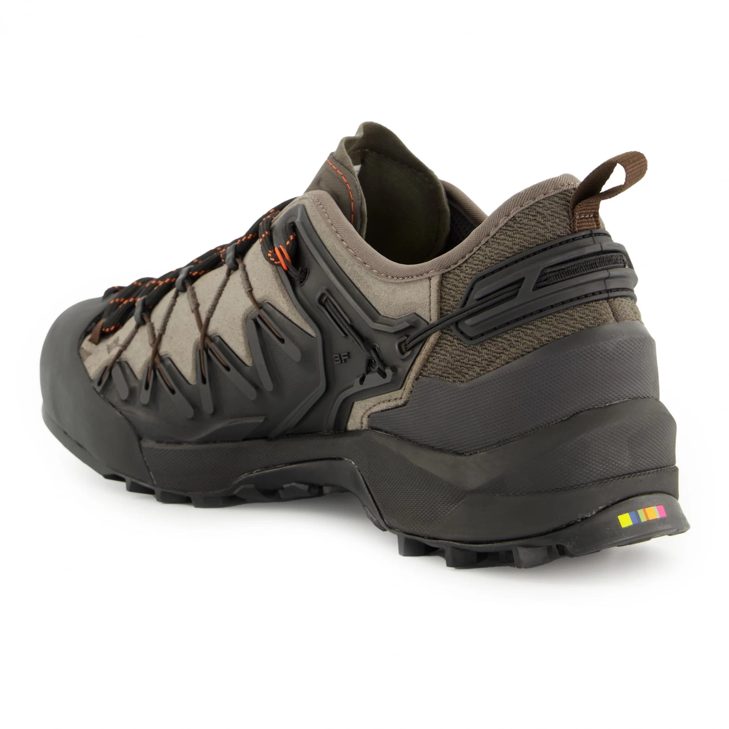 Vielseitige Sportschuhe mit Lizenz zum Klettern: die Wildfire Edge Approachschuhe von Salewa! Beste Materialien und eine ausgefeilte Schaftkonstruktion aus Leder und Synthetik in einer 3D-Cage-Rahmenstruktur sorgen hier für die perfekte Abstimmung aus formschlüssigem Sitz und widerstandsfähiger Stabilität. Dazu trägt auch die Pomoca Speed Außensohle bei, welche erstklassigen Grip vor allem auf Fels mit guten Laufeigenschaften wie hoher Traktion verbindet.