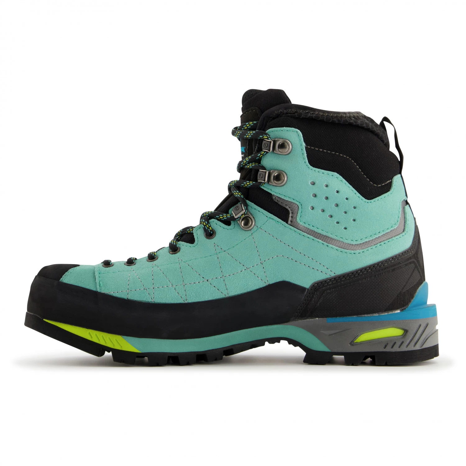 Die Scarpa Women’s Zodiac Tech GTX Bergschuhe sind mittelhohe und sehr robuste Bergstiefel, die sich hervorragend für Zustiege in technischem Gelände und anspruchsvolle Bergtouren eignen. Die Schuhe sind mit einem GORE-TEX-Futter ausgestattet, das sie komplett wasserdicht macht. Zugleich sind sie aber auch sehr atmungsaktiv, sodass ein komfortables Fußklima gewährleistet ist. Das hochwertige Obermaterial aus Perwanger-Wildleder ist robust und abriebfest. Die kurze abschließende Gamasche besteht aus einem wasserresistenten und elastischen Material. Dank der Sock-Fit Konstruktion sitzt der Schuh wie eine zweie Haut. Die weit nach vorne gezogene Schnürung sorgt für zusätzliche Stabilität. Die Vibram Pentax Precision II XT Außensohle garantiert Sicherheit und Schutz in jeglichem noch so felsigen Gelände und ist mit sämtlichen semi-automatischen Steigeisen kompatibel. Die Active Impact Technologie erhöht die Dämpfungseigenschaften und verbessert gleichzeitig den Energiefluss beim Abrollen. Dank des Flex Point Systems besitzen die Knöchel absolute Bewegungsfreiheit, ohne dass man Einbußen an Stabilität und Trittsicherheit in Kauf nehmen muss. Und mit dem Autofit Collar verfügen die Schaftabschlüsse über eine ergonomische Passform sowie eine bequeme Polsterung. Mit den Scarpa Women’s Zodiac Tech GTX Bergschuhen ist man perfekt ausgerüstet für das nächste anspruchsvolle Abenteuer am Berg.
