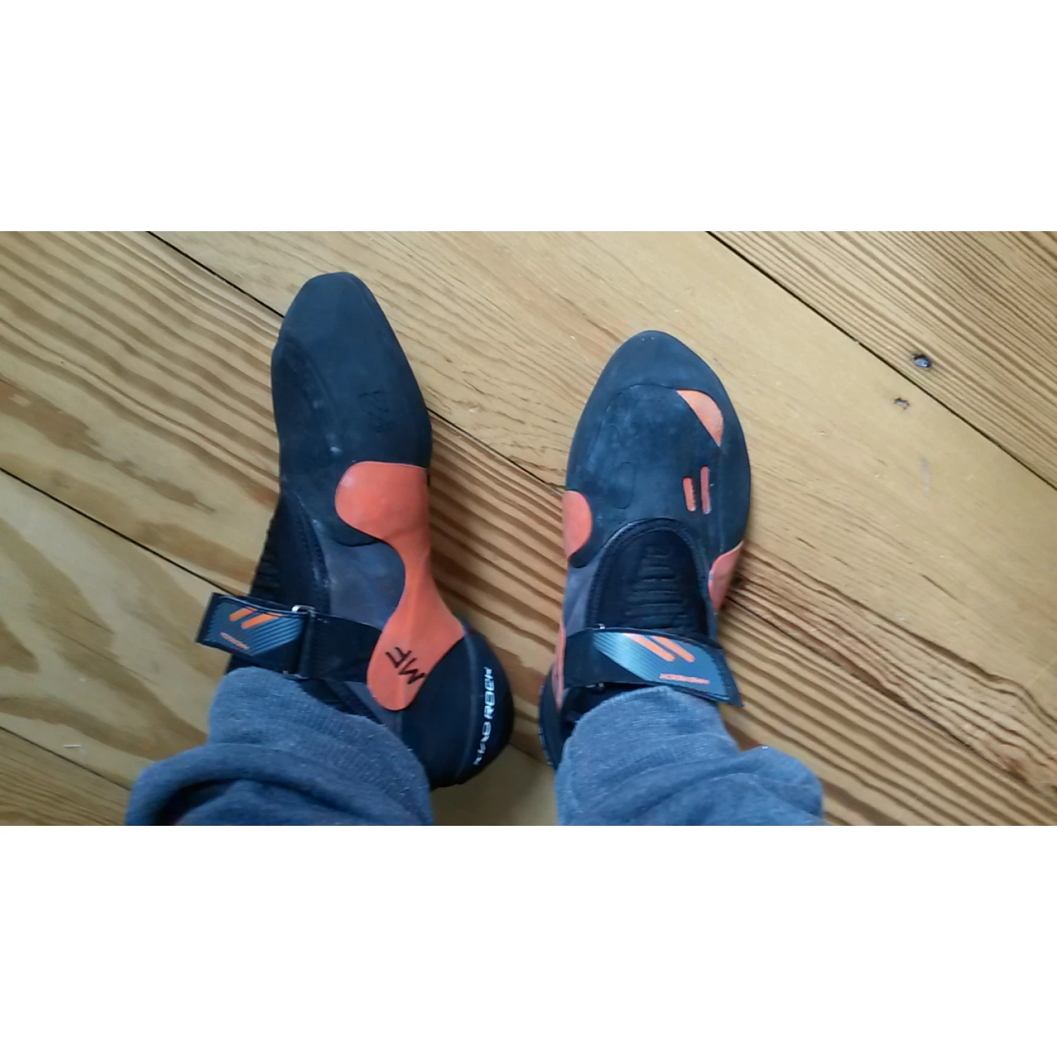 Mit diesem Schuh ließ Jan Hojer beim Boulderweltcup 2014 seine gesamte Konkurrenz hinter sich – der Shark 2.0 von Mad Rock! Dank seiner aggressiven Vorspannung punktet der High-End Kletterschuh vor allem in Überhängen, da man sich mit der griffigen Sohle an kleinen Schüppchen und Leistchen perfekt festkrallen kann. Diese bietet zudem ein optimales Feingefühl für kleine Strukturen. Die Außenseite des Schuhs besteht fast komplett aus Gummi. Das bedeutet, dass von Heel Hooks über Toe Hooks bis hin zu Foot Locks in jeder erdenklichen Variante und Fußposition möglich sind. Das Arch Flex System mit dem elastischen R2 Randgummi garantiert für eine bequeme Passform wie eine zweite Haut, und die 3D-geformte Fersenkappe sitzt nicht nur komfortabel, sondern klebt auch bei jedem Hook. Für viel Grip sorgt die Science Friction 3.0 Sohle, die den Schuh langlebig und robust macht. Den letzten Kick für die astreine Performance gibt schlussendlich noch das überzeugend geringe Gewicht des Kletterschuhs.