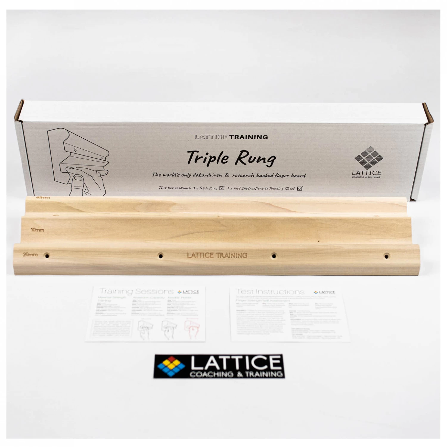 Im Lieferumfang des Boards sind Einzelheiten zur Durchführung eines Fingerkrafttests enthalten. Das Ergebnis des Tests kann dann an Lattice gesendet werden, damit ein benutzerdefinierter Bericht erstellt wird, der eine Einschätzung der eigenen Stärke liefert, um noch gezielter zu trainieren und sich mit anderen messen zu können. Da bleibt man motiviert!